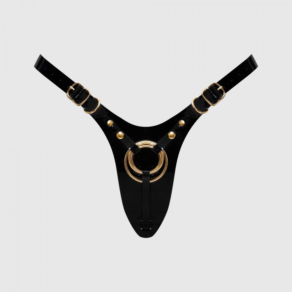 Роскошный пояс для страпона Fabulous бросает вызов условностям, переосмысливая классические стринги через призму бескомпромиссного гламура. Каждая деталь тщательно продумана: минималистичная спинка-стринги деликатно подчеркивает линию ягодиц, а глянцевое лаковое покрытие придает люксовый вид. Регулируемые лямки обеспечивают идеальную посадку и полную свободу движений. Три сменных металлических кольца гарантируют надежное крепление фаллоимитаторов разного размера. Диаметр колец - 3,5, 4 и 5 см.